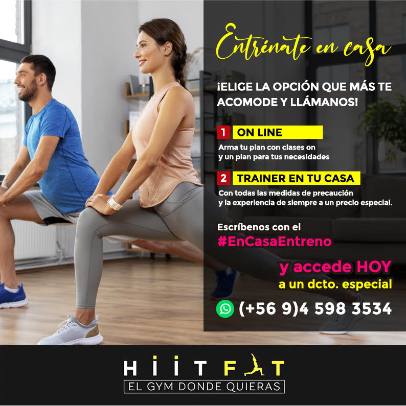 HIIT con ejercicios de alta intensidad con poca pausa, en modalidad de circuito, donde podrás desarrollar distintas cualidades físicas.